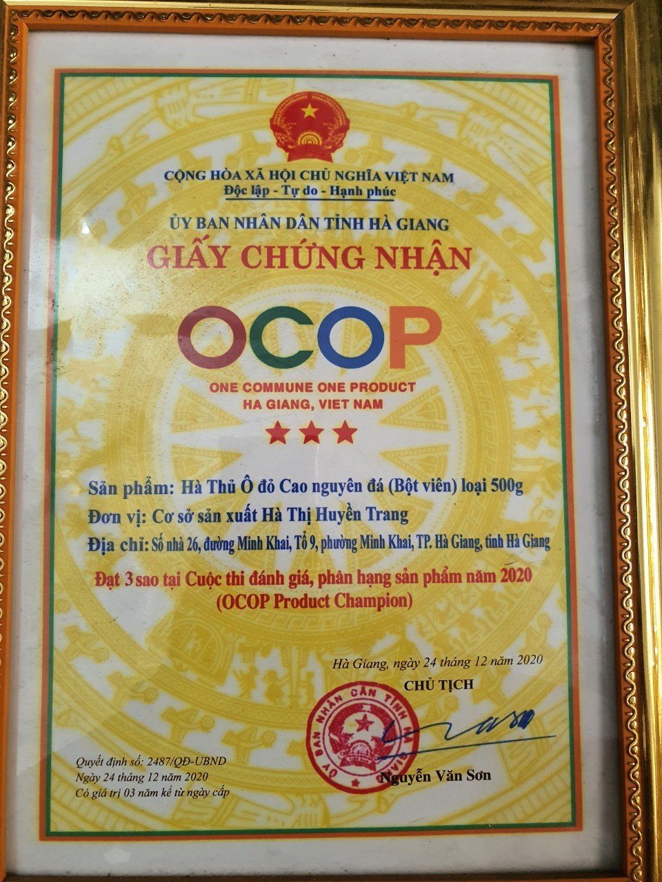 Xuất xứ: Tổ 9 phường Minh Khai thành phố Hà Giang tỉnh Hà Giang