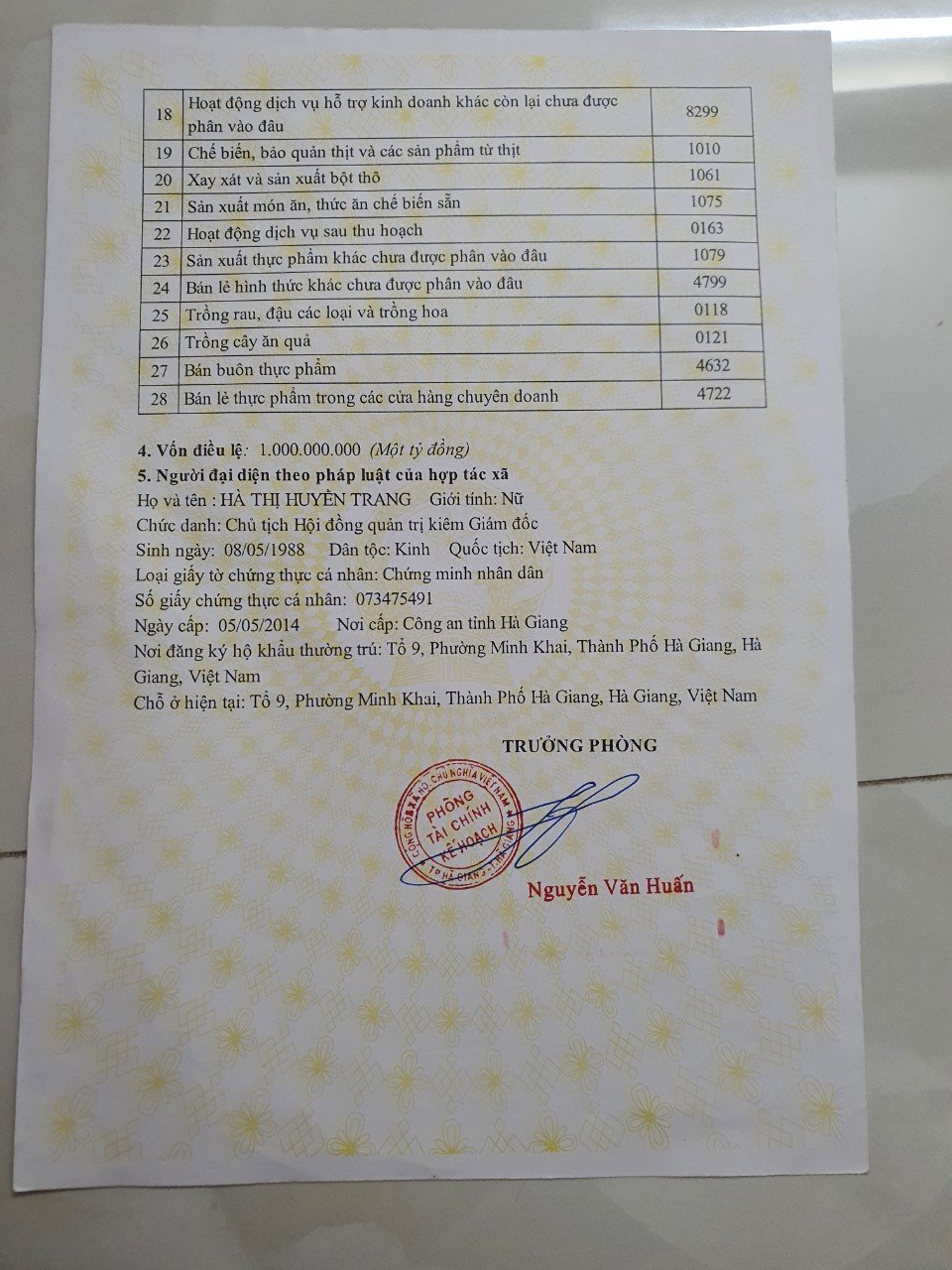 | Địa chỉ | Số nhà 26 đường Minh Khai tổ 9 phường Minh Khai thành phố Hà giang tỉnh Hà Giang |